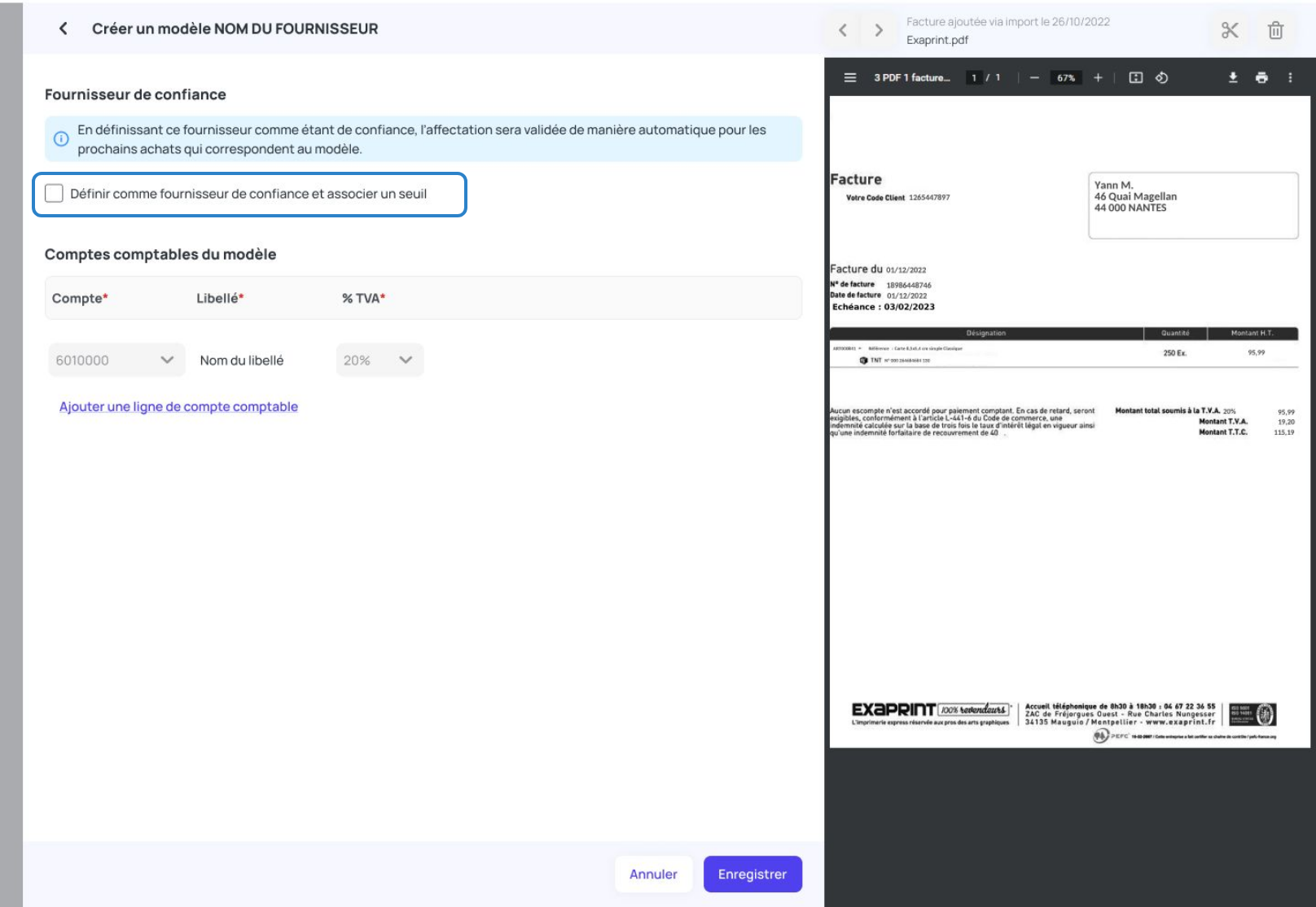 | Une affectation comptable automatisée grâce aux modèles fournisseurs