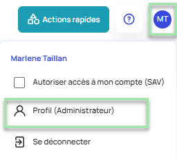 Depuis votre espace MEG, cliquez sur la bulle avec vos initiales en haut à droite et sélectionnez "profil"