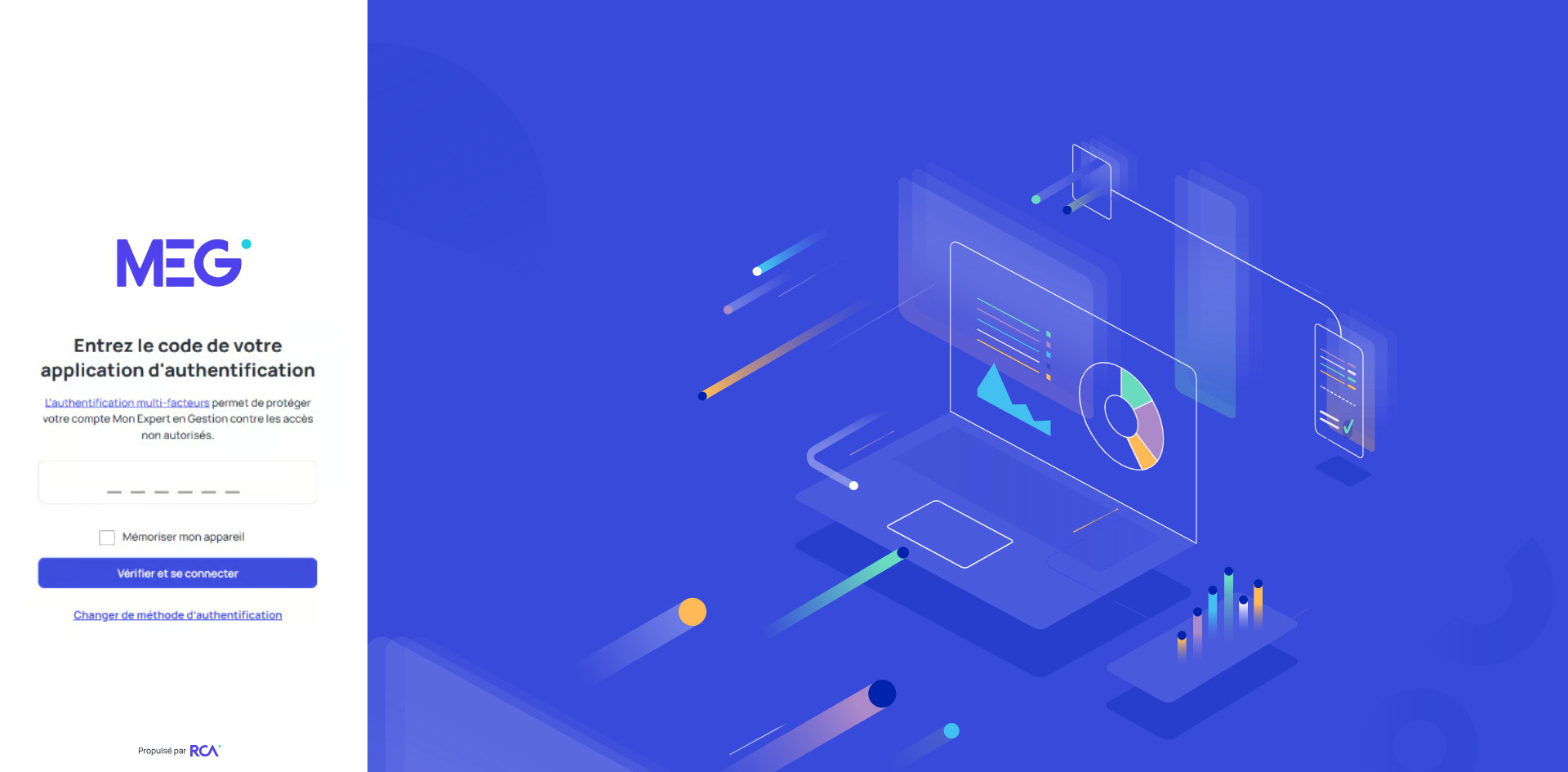 Par défaut, dans MEG, vous devez renseigner un code envoyé à l'adresse e-mail qui est liée à votre compte . Ceci n’est pas considéré comme une authentification multi-facteur mais comme une vérification en 2 étapes. En effet, le mail ne permet pas de prouver avec suffisamment de confiance que celui qui a reçu le mail est bien le propriétaire du compte.